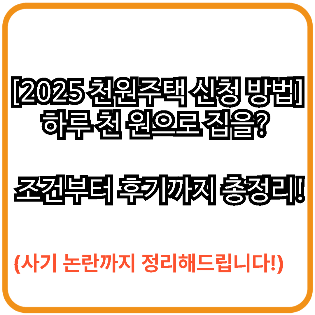 [2025 천원주택 신청 방법] 하루 천 원으로 집을? 조건부터 후기까지 총정리!